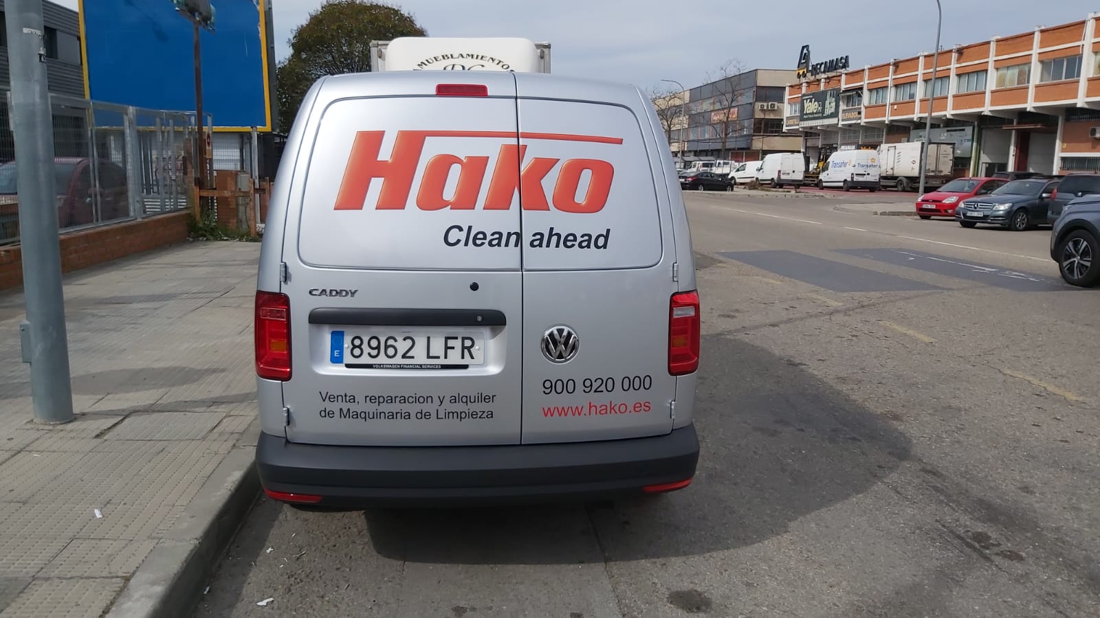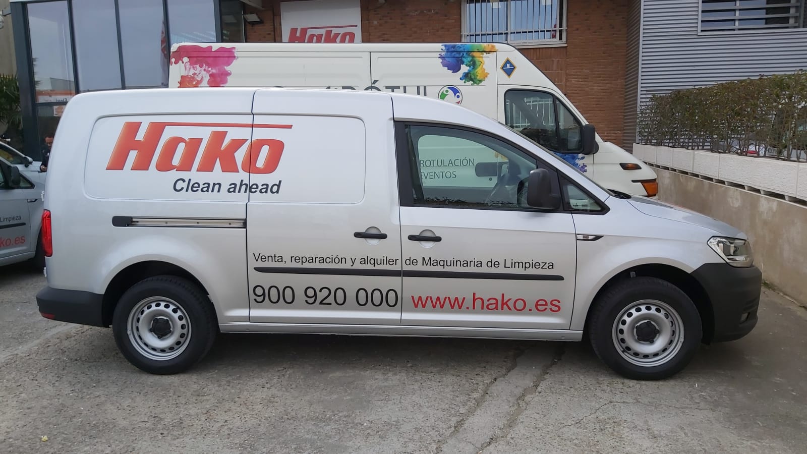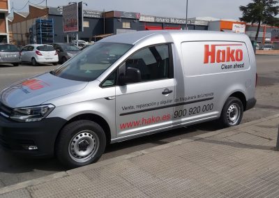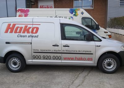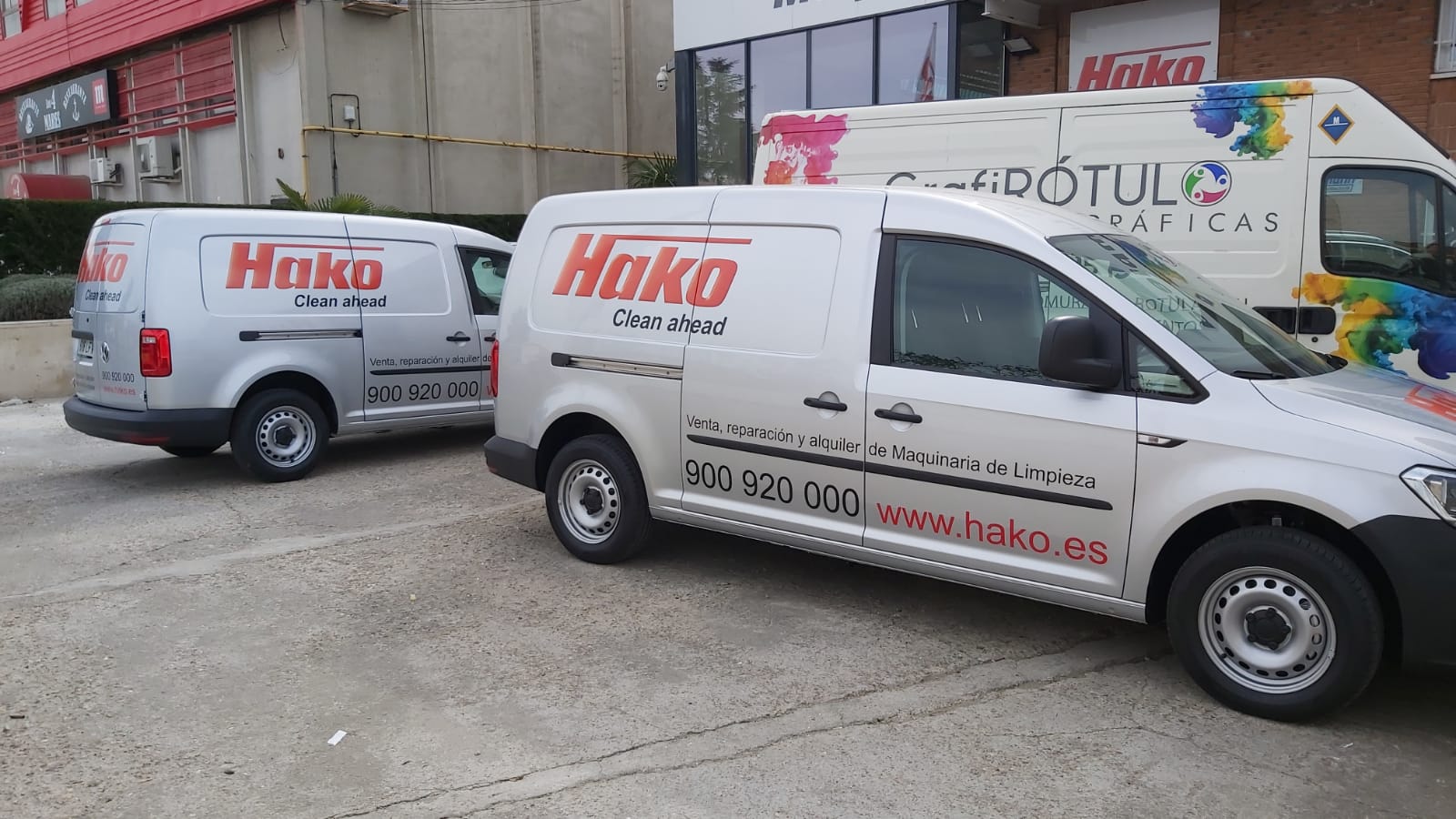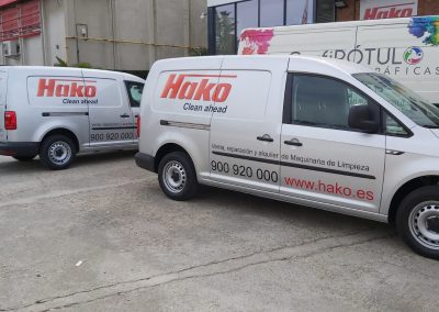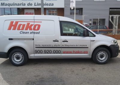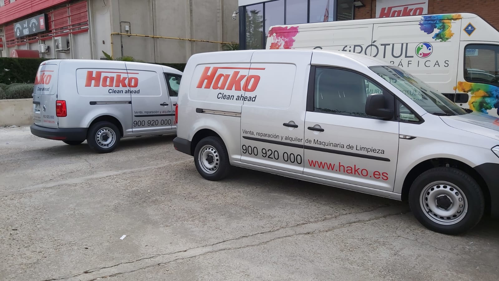 Rotulación de estas Volkswagen Caddy del fabricante internacional líder en equipos de limpieza industrial «Hako» con vinilos en impresión digital troquelado.