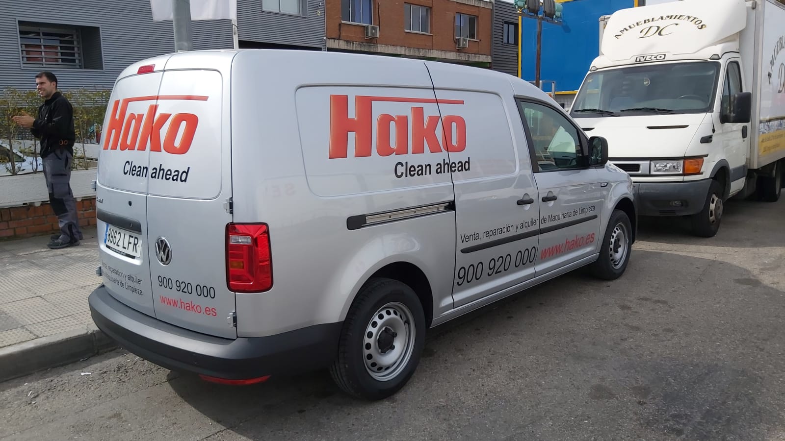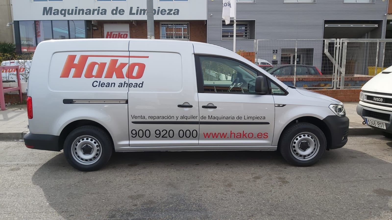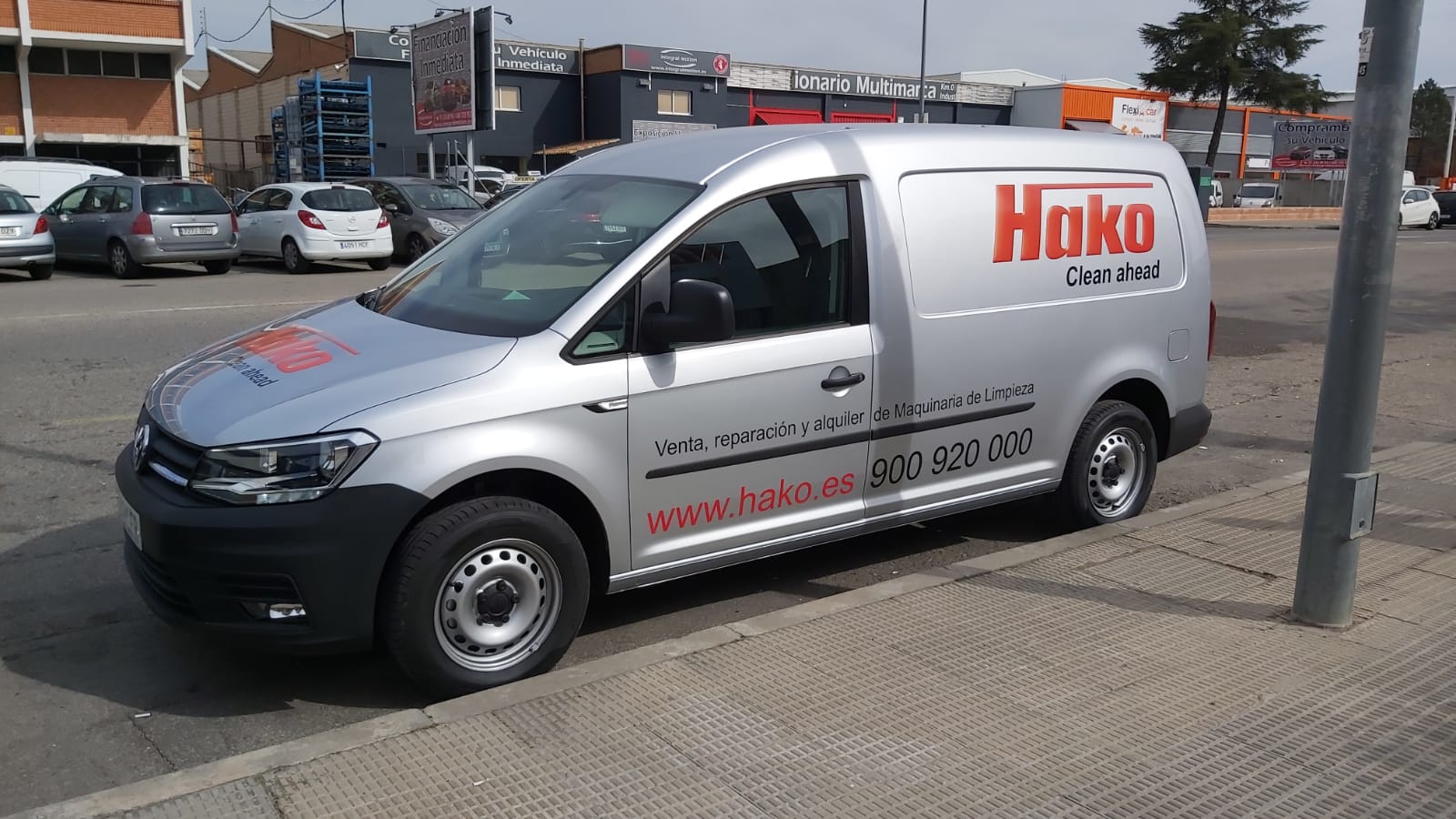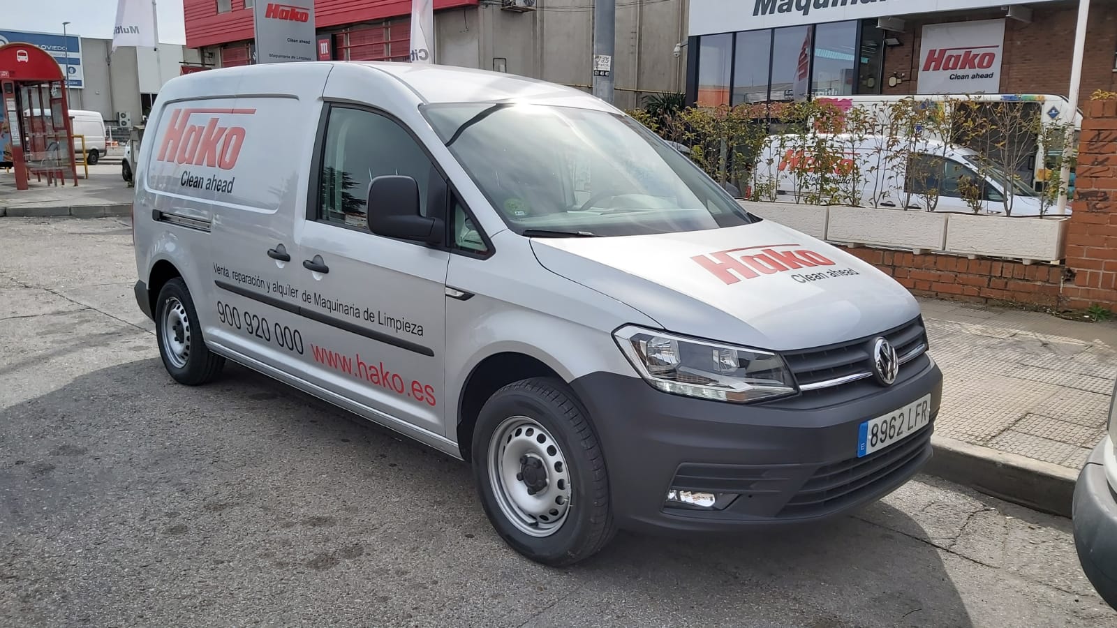 Rotulación de estas Volkswagen Caddy del fabricante internacional líder en equipos de limpieza industrial «Hako» con vinilos en impresión digital troquelado.