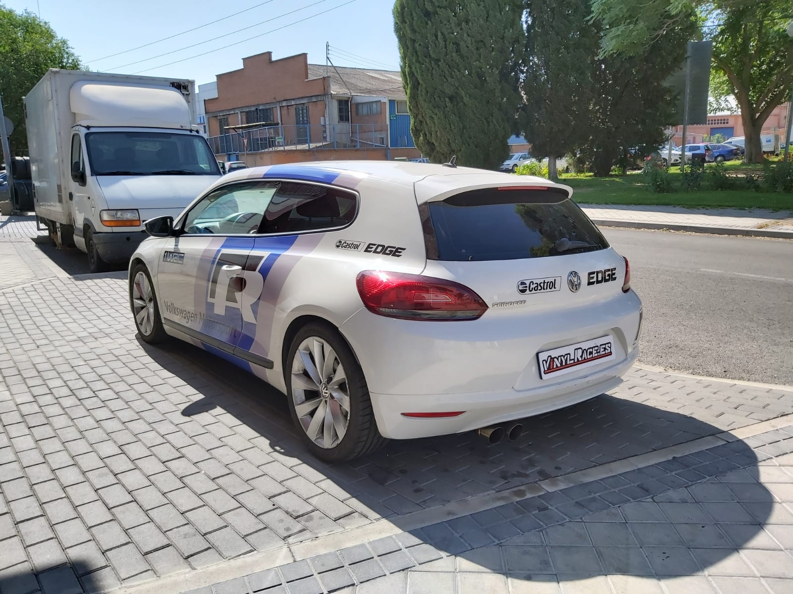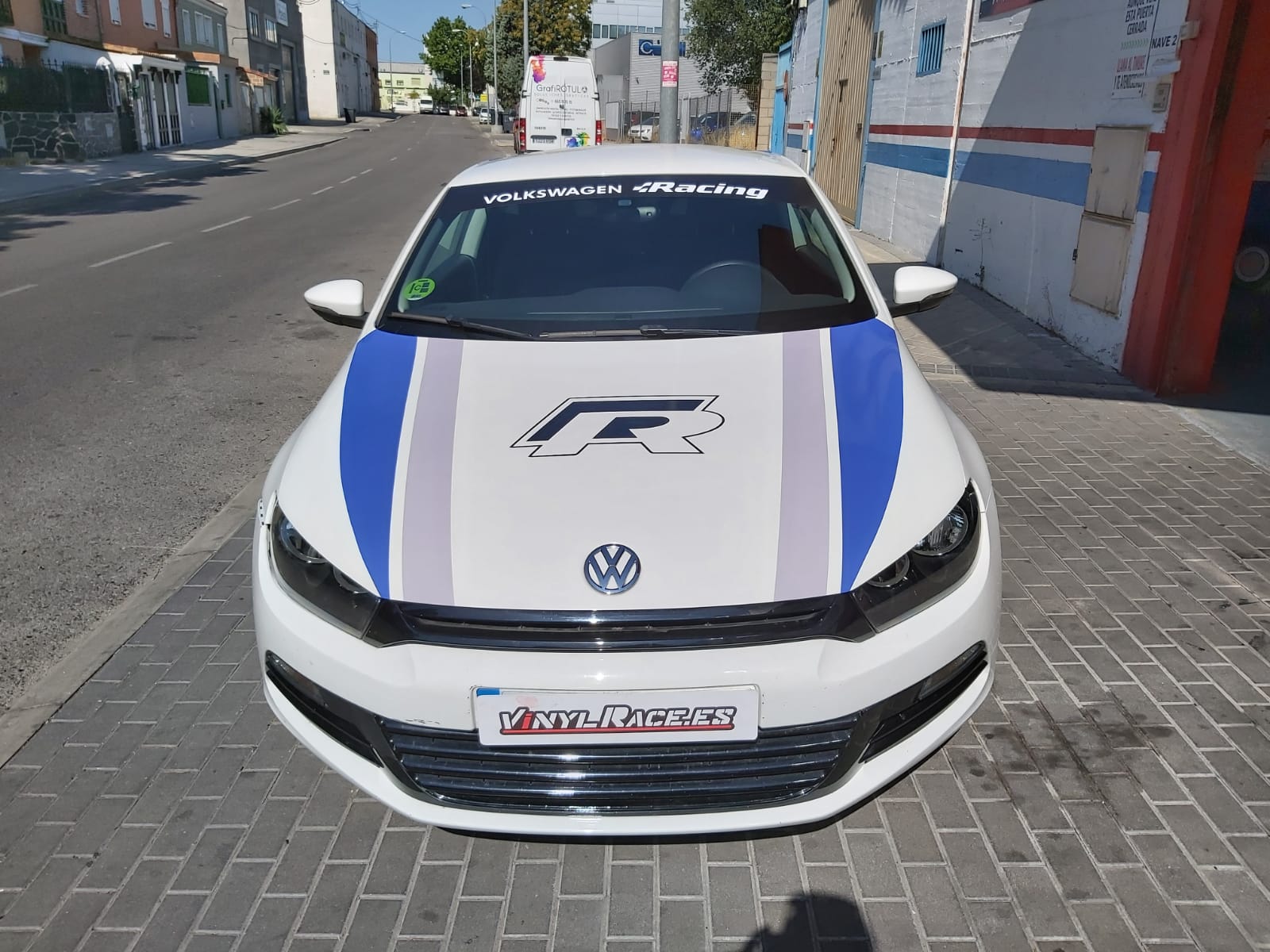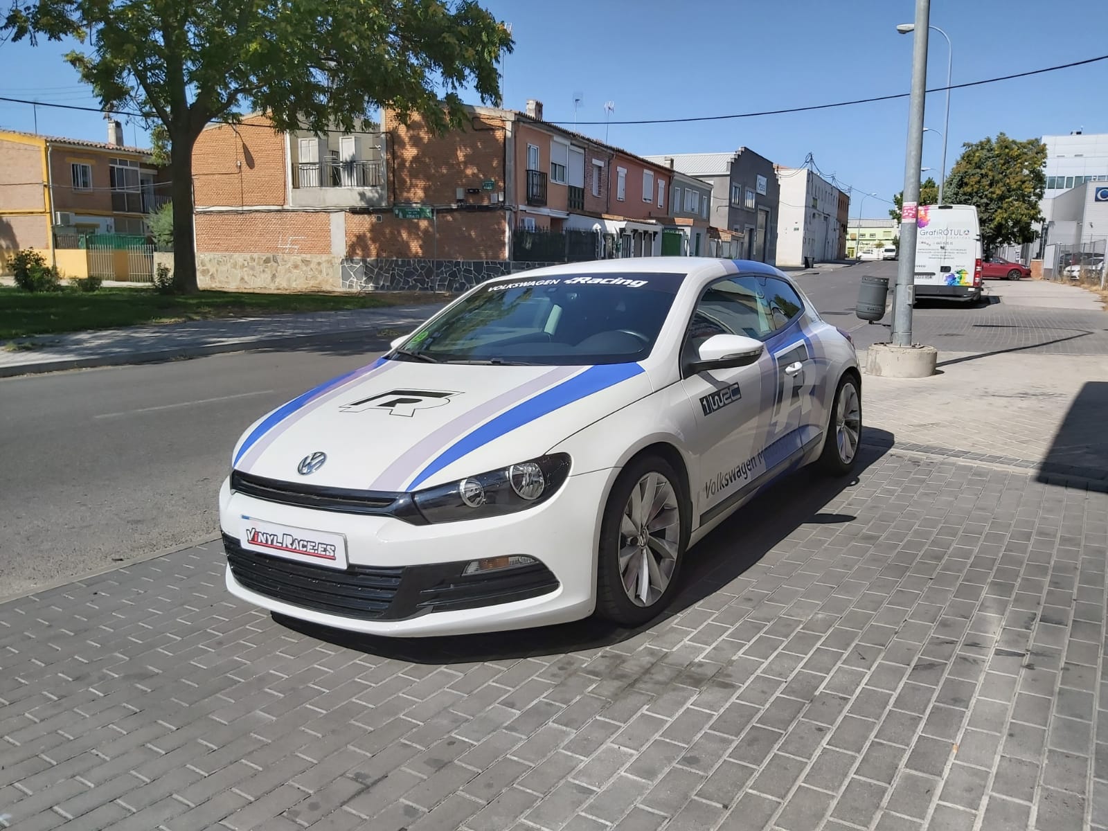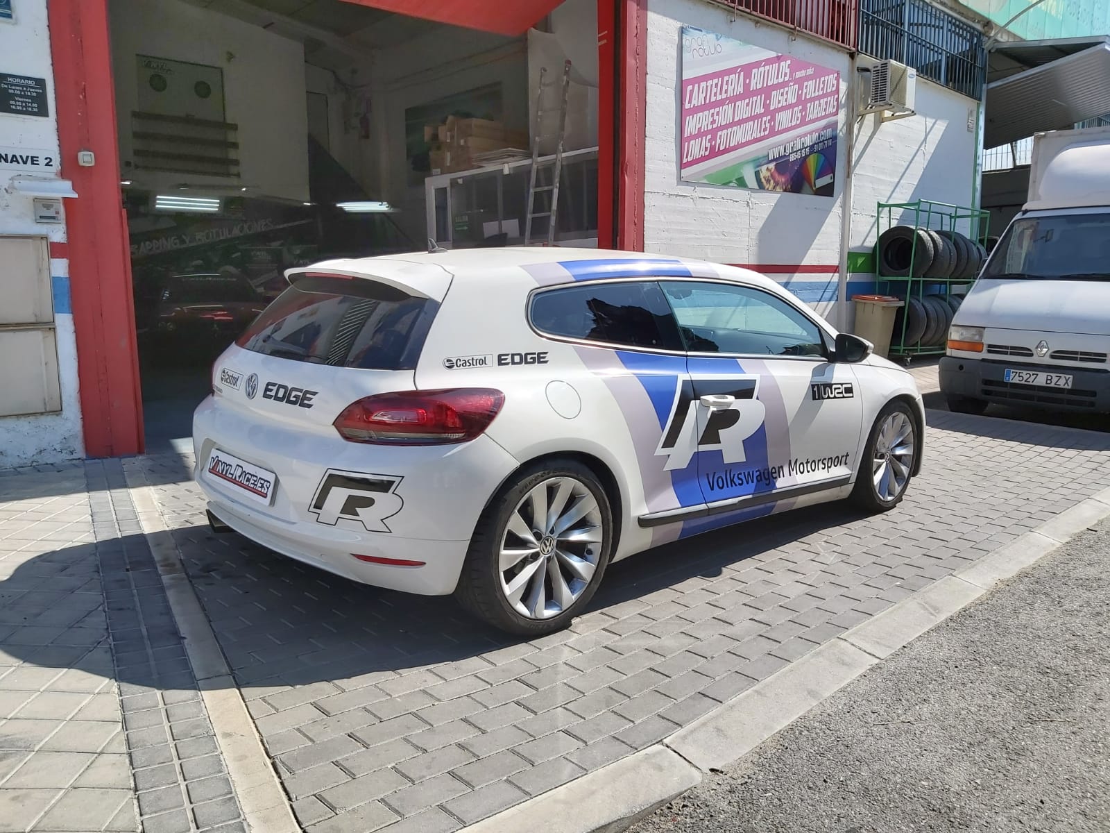 Una rotulación réplica basada en los colores del Wolskwagen Polo WRC, aplicada en el Scirocco R, se ve todavía más espectacular.